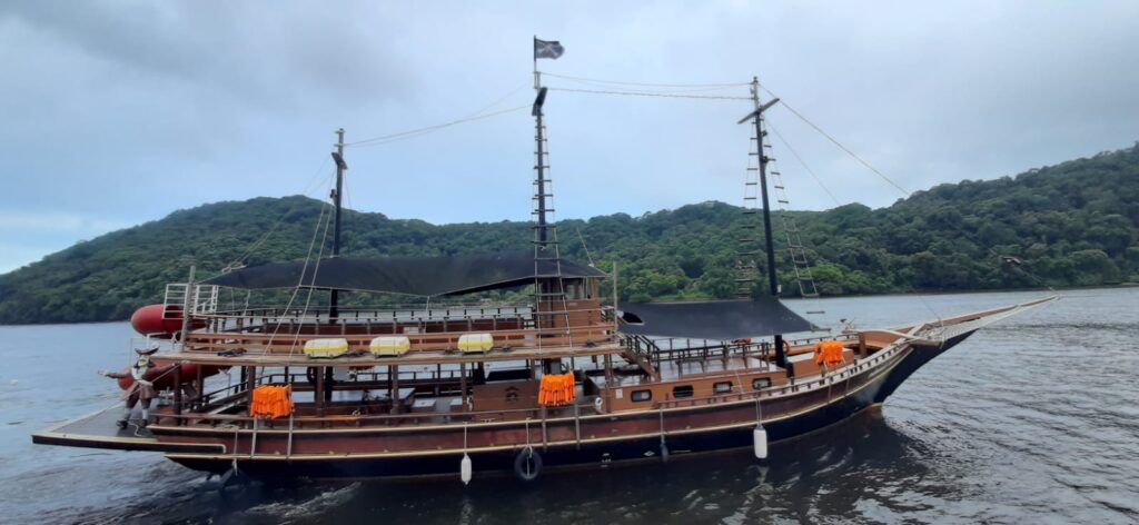 Os tradicionais passeios de escuna em Bertioga são uma atração à parte. As embarcações, muitas delas estilizadas como navios piratas, fazem paradas em ilhas e praias com águas cristalinas, proporcionando momentos de diversão e aprendizado sobre a história local.