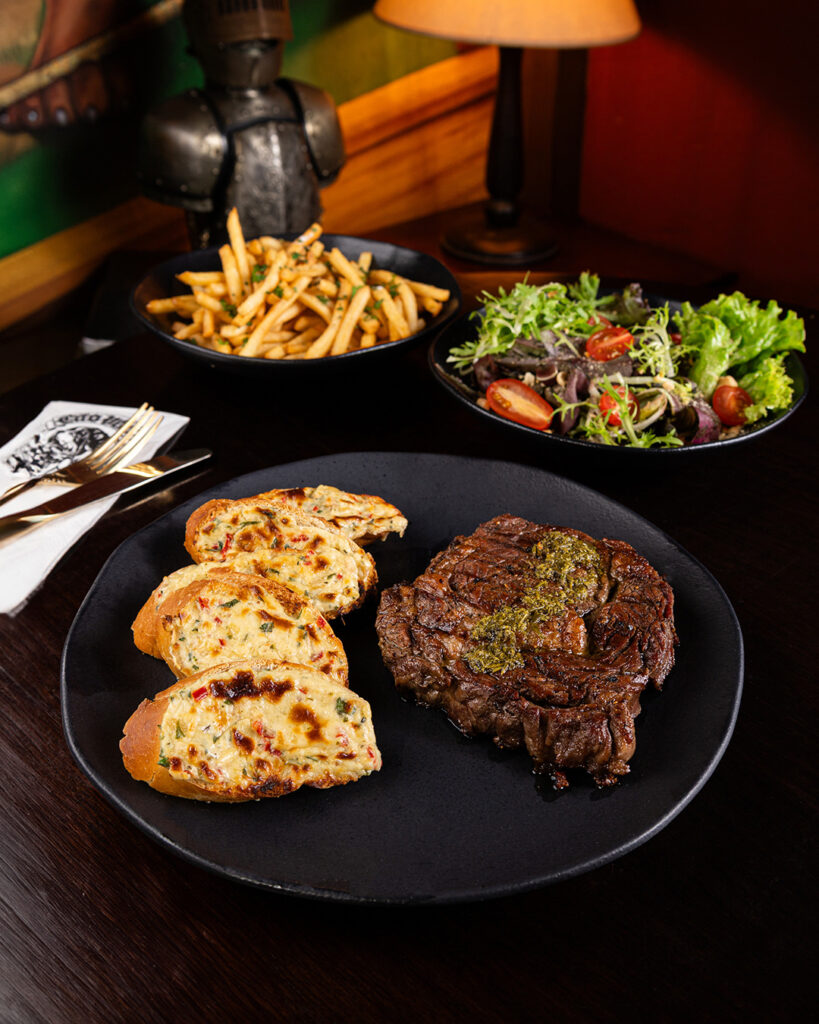 Outro sucesso é o Cane Corso (R$ 159), ancho angus grelhado acompanhado de batata palito, pão de alho com catupiry, salada, vinagrete e chimichurri.