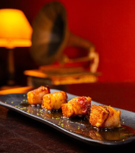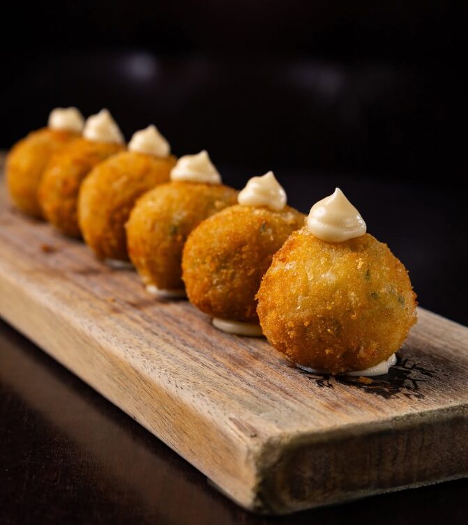 A influência de Henrique Fogaça aparece em pratos de sabores marcantes, combinações ousadas e releituras cheias de personalidade. O menu foge do comum e transforma clássicos de bar em versões mais criativas e bem executadas.