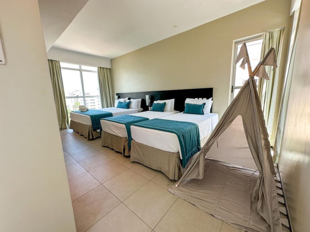 Já na orla urbana da capital, entre Pajuçara e Ponta Verde, o grupo reúne outras opções voltadas para famílias. O Maceió Mar Hotel, com mais de três décadas de tradição e localização em frente ao mar, oferece os quartos Premium Family, que acomodam até quatro pessoas e garantem gratuidade para até duas crianças de até 10 anos.