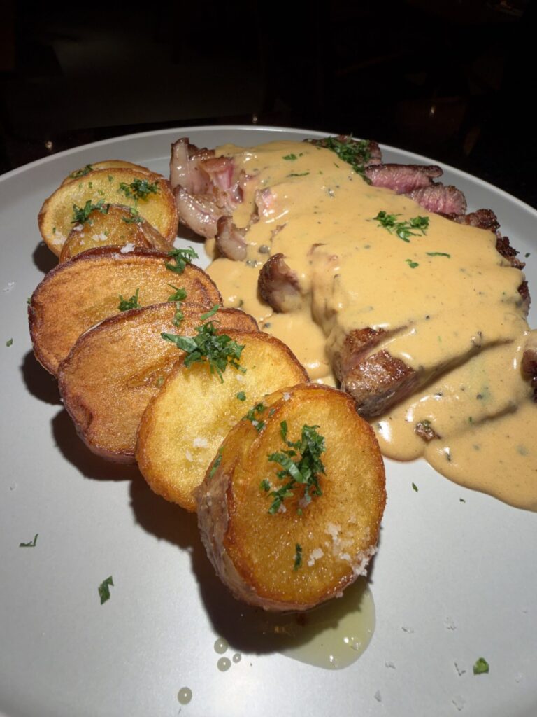 Na sequência, destaques incluem o entrecôte au poivre (contra filé de angus, molho de pimenta preta, mostarda dijon e batatas rústicas), o pirarucu grelhado ao molho de arancia (corte nobre de pirarucu grelhado com legumes grelhados ao molho de laranja) e o tagliatelle al ragú di cupim (talharim ao ragu de cupim e parmesão). De sobremesa, o brownie de castanha de baru (brownie de chocolate 70% e castanha de baru com gelato de baunilha) e a goiabada assada (goiabada assada ao vinho e amendoim com gelato de queijo Nicola) são pedidas certas.